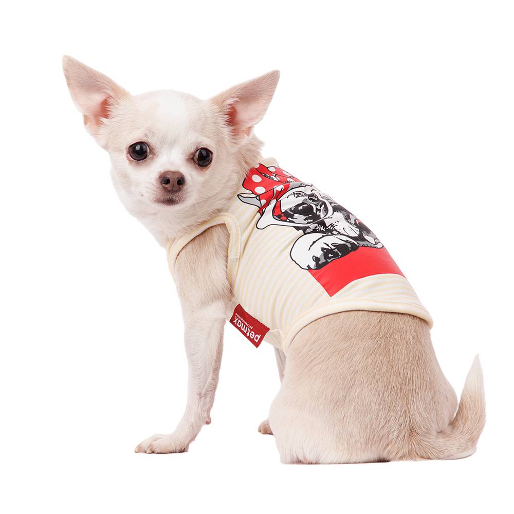 Бежевая футболка в полоску подойдет любому питомцу. Она легко надевается, не сковывает движений и очень стильно смотрится. Футболка защитит питомца от палящего солнца в яркий солнечный день, поможет комфортно себя чувствовать в прохладные дни.