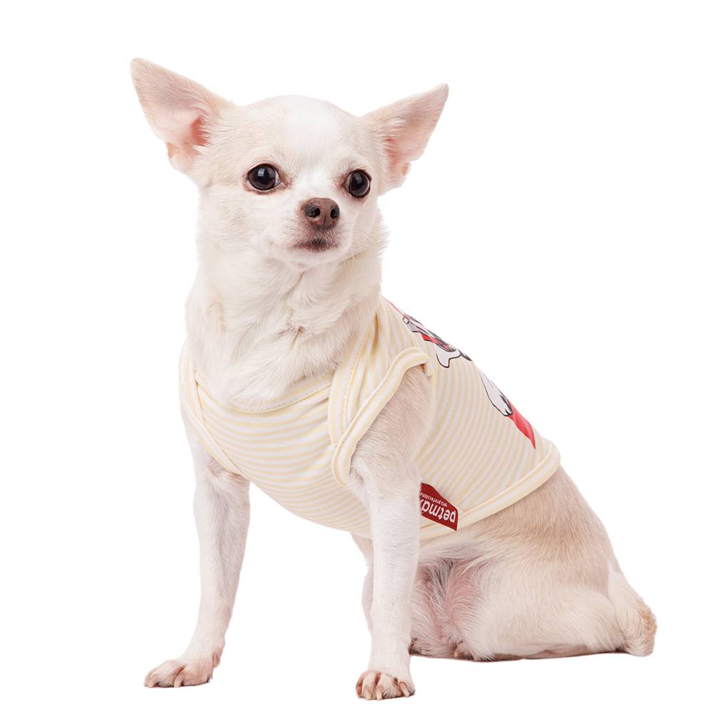 Бежевая футболка в полоску подойдет любому питомцу. Она легко надевается, не сковывает движений и очень стильно смотрится. Футболка защитит питомца от палящего солнца в яркий солнечный день, поможет комфортно себя чувствовать в прохладные дни.