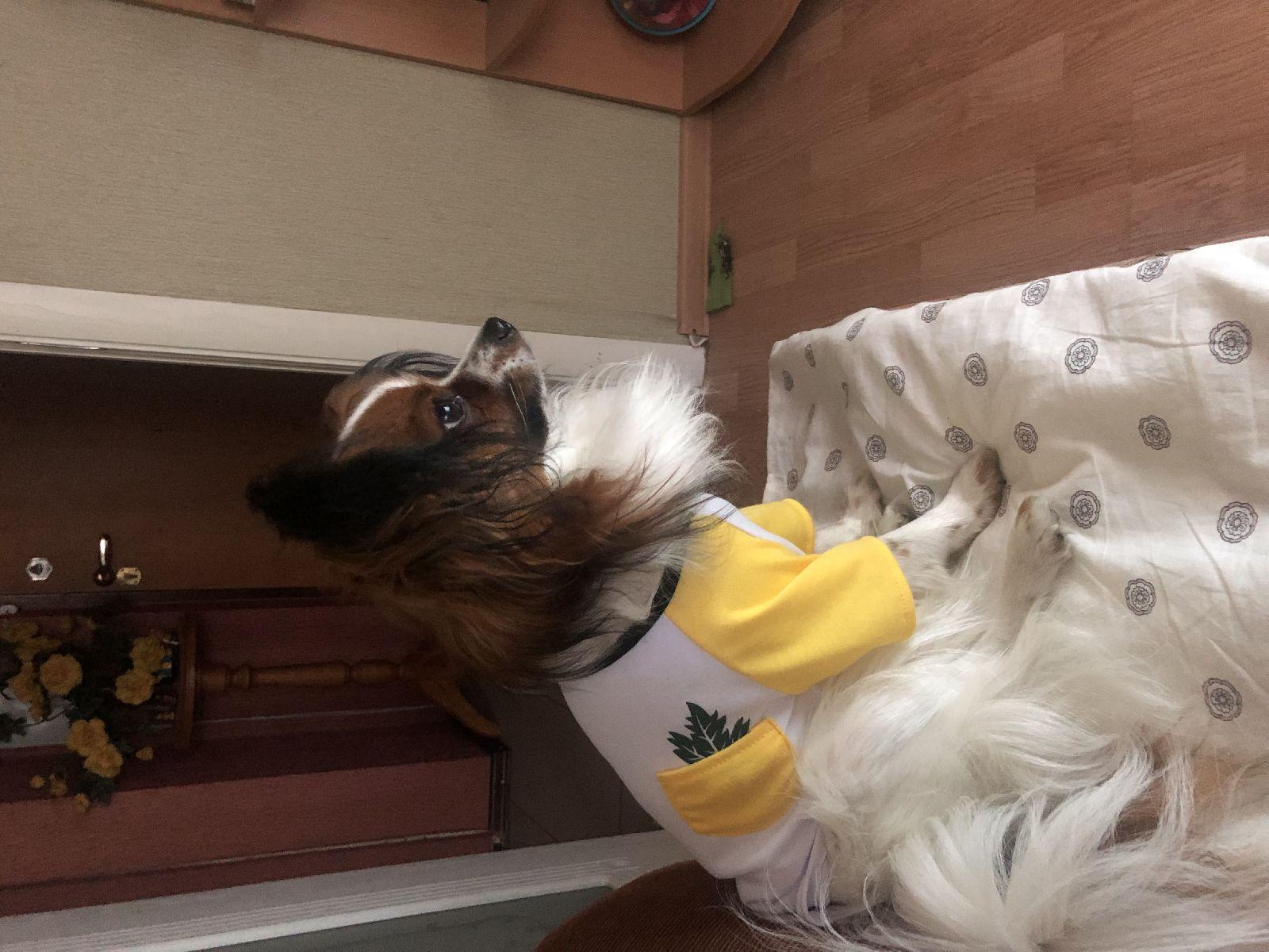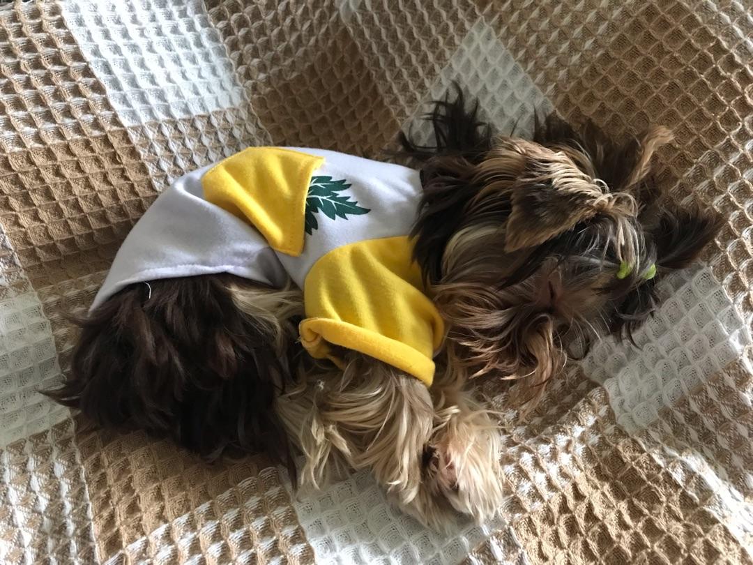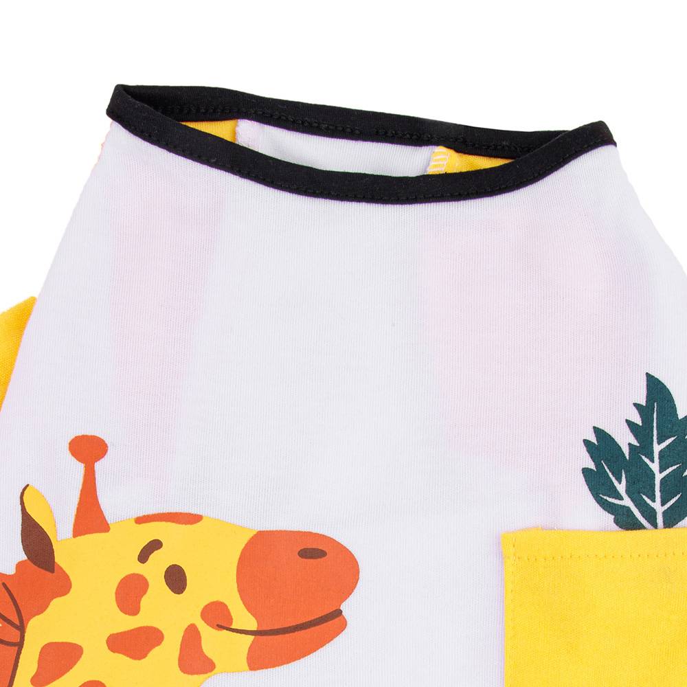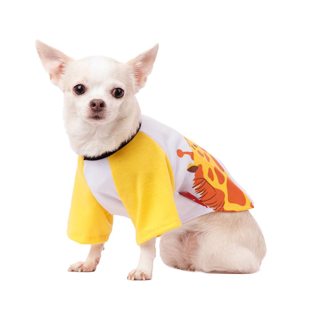 Белая футболка с желтыми рукавами подходит для повседневного ношения, праздничных мероприятий и для проведения фотосессий. Футболка защитит питомца от палящего солнца в яркий солнечный день, поможет комфортно себя чувствовать в прохладные дни.