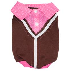 Petmax Футболка - рубашка розово-коричневая для собак любой породы и возраста. Легкая трикотажная футболка защитит шерсть вашего питомца от пыли, мусора, колючек во время прогулки, поэтому для пушистых собак с мягкой шерстью такая одежда актуальна даже в жаркий летний сезон. Оригинальный дизайн футболки смотрится необычно и ярко, в такой одежде ваш питомец не потеряется, будет виден издалека. Футболка изготовлена из качественного материала, проста в уходе и благодаря удобному крою не стесняет движений.