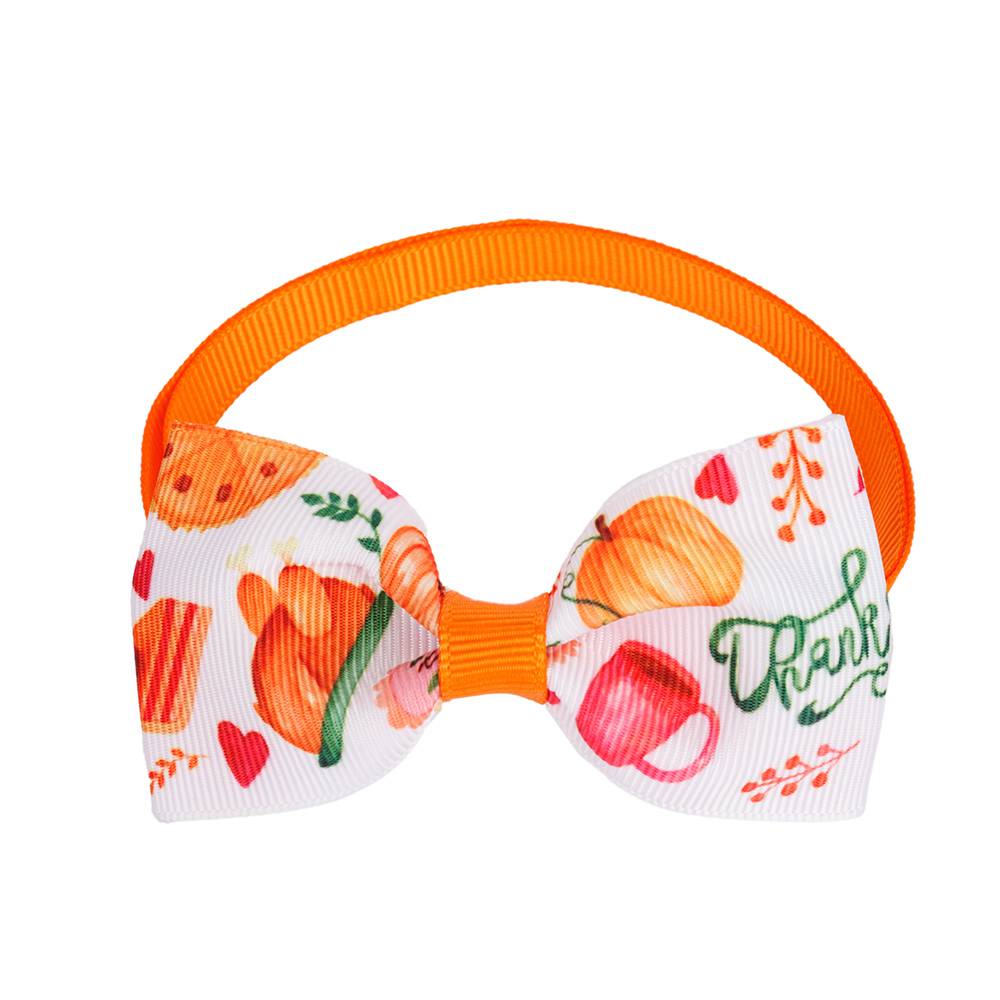 Белый галстук-бант с тыквами станет прекрасным подарком питомцу!