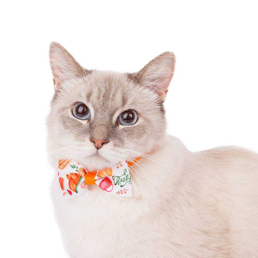 Белый галстук-бант с тыквами станет прекрасным подарком питомцу!