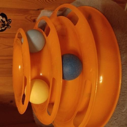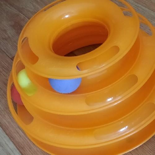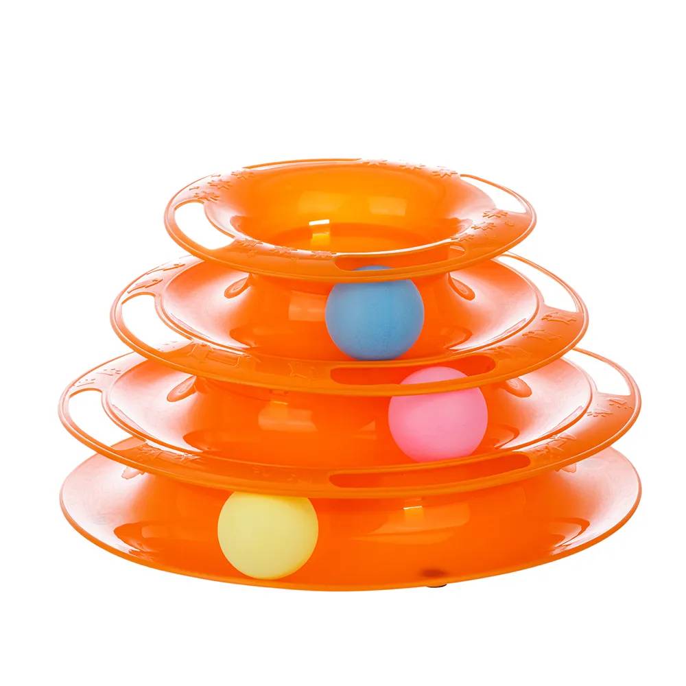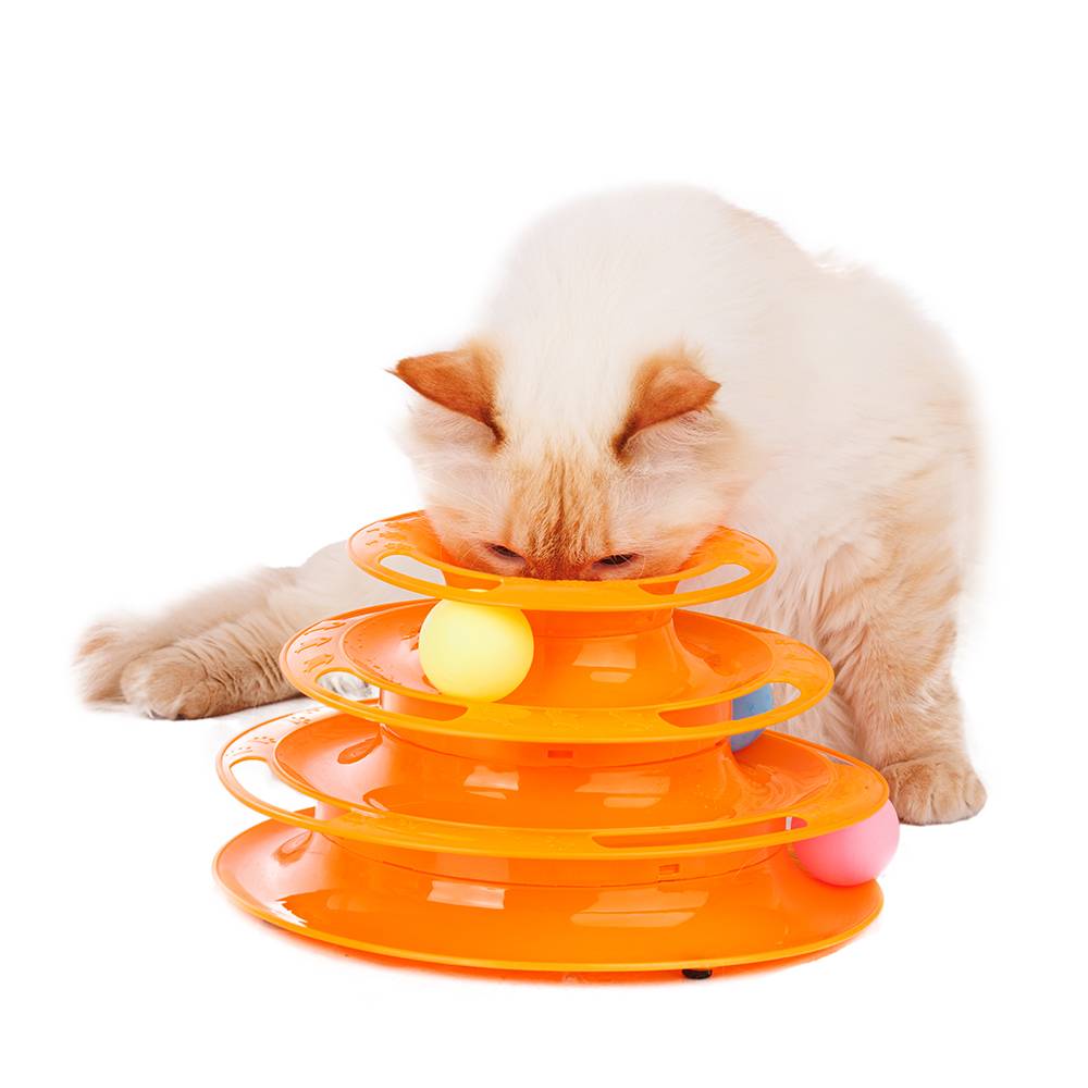 - Трехуровневая башня - трек с тремя разноцветными мячами - погремушками, стимулирует двигательную активность вашего питомца.