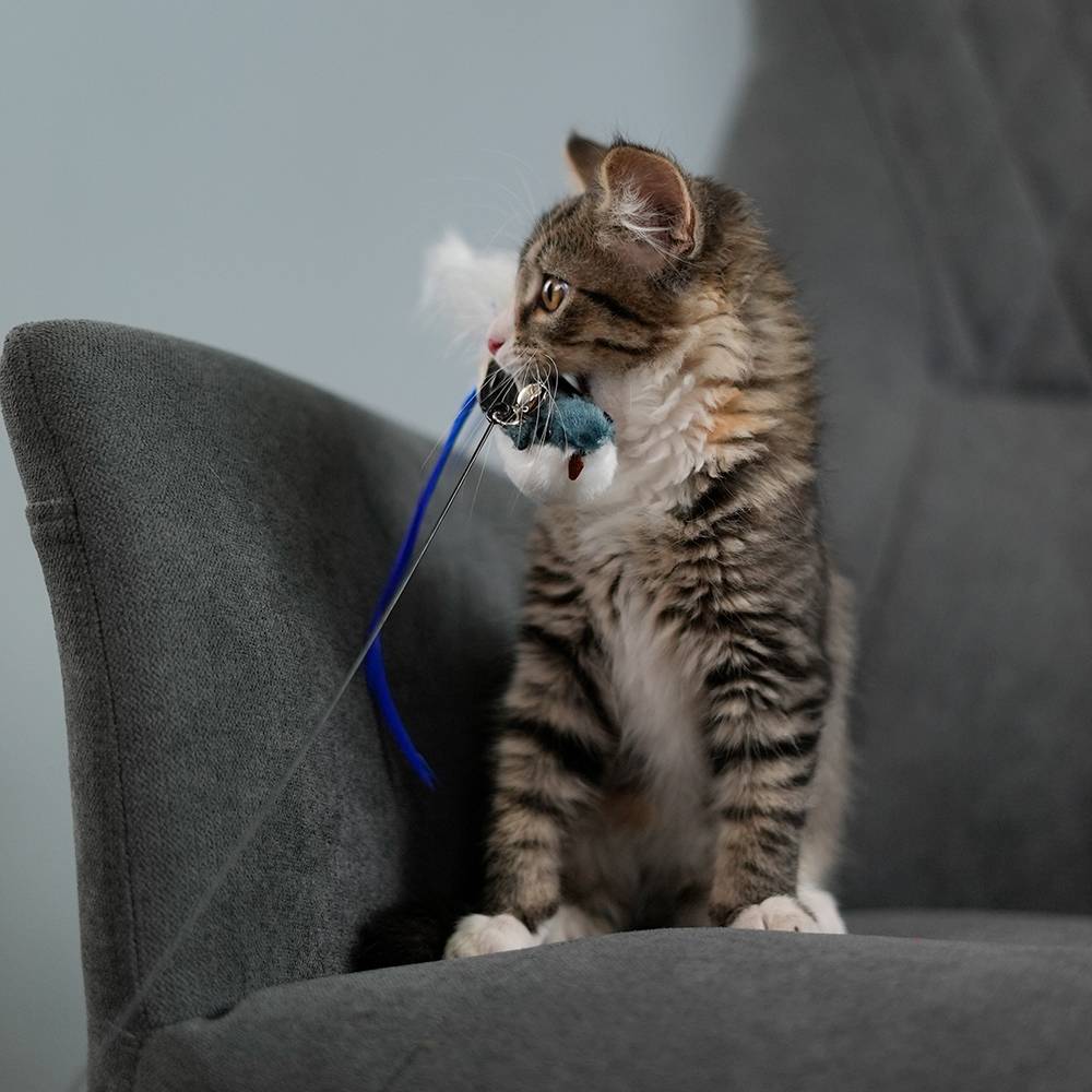 Подбирайте игрушку согласно размерам питомца. У кошки не должно быть возможности проглотить изделие целиком или какие-либо его части. Если любимец склонен к поеданию несъедобных предметов, давайте игрушку под присмотром.