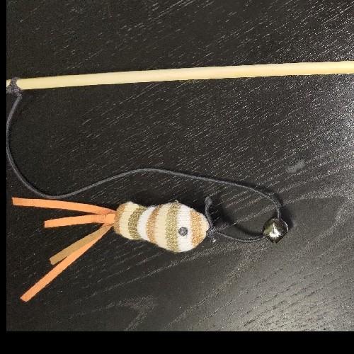 Коту очень понравилась игрушка. С удовольствием за ней прыгает, и я вместе с ним тоже играю. Прочная резинка, точно не перекусить, сама рыбка связанная, мягкая, приятная на ощупь. Палочка и верёвка длинные.