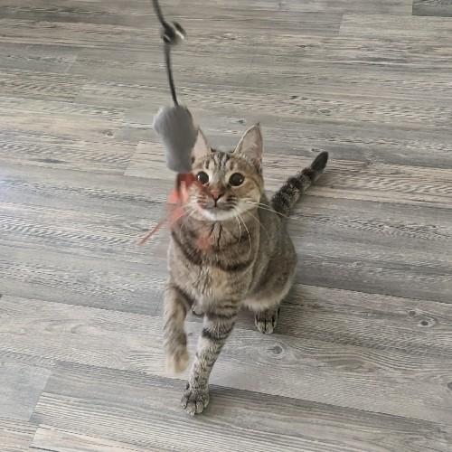 Кот не особо игривый, но удочку оценил) Раз в день охотиться. Не многие игрушки удостаиваются его внимания…Комментарий