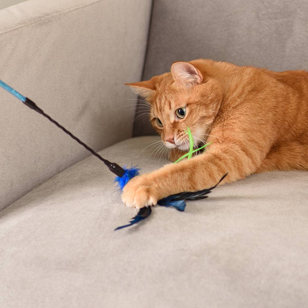 - На игрушке есть перья для привлечения внимания питомца.