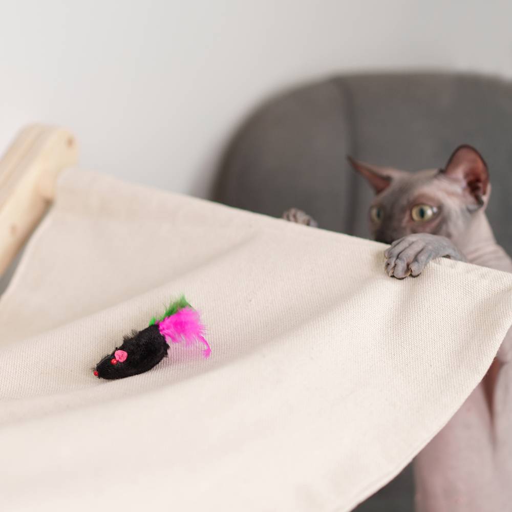 Яркая игрушка с погремушкой внутри, перья из попы мышки быстро выдернула, но интерес к игрушке не потеряла. кошка постоянно нам приносит её в кровать для игры. хорошая игрушкаКомментарий