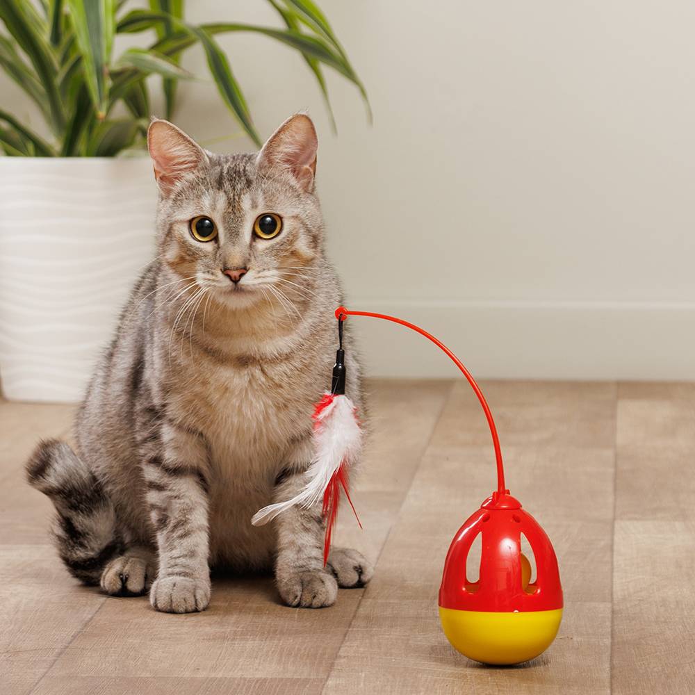 - Игрушка отвлечет вашего кота или кошку от нежелательных игр с предметами интерьера.
