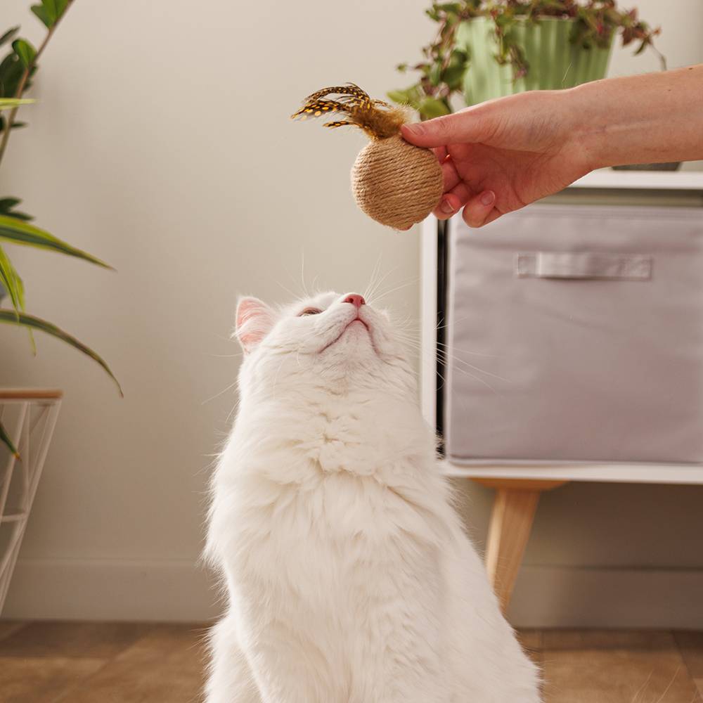 Игрушка для кошек Шар с перьями от бренда Petmax займет питомца и отвлечет от нежелательных игр с предметами интерьера.