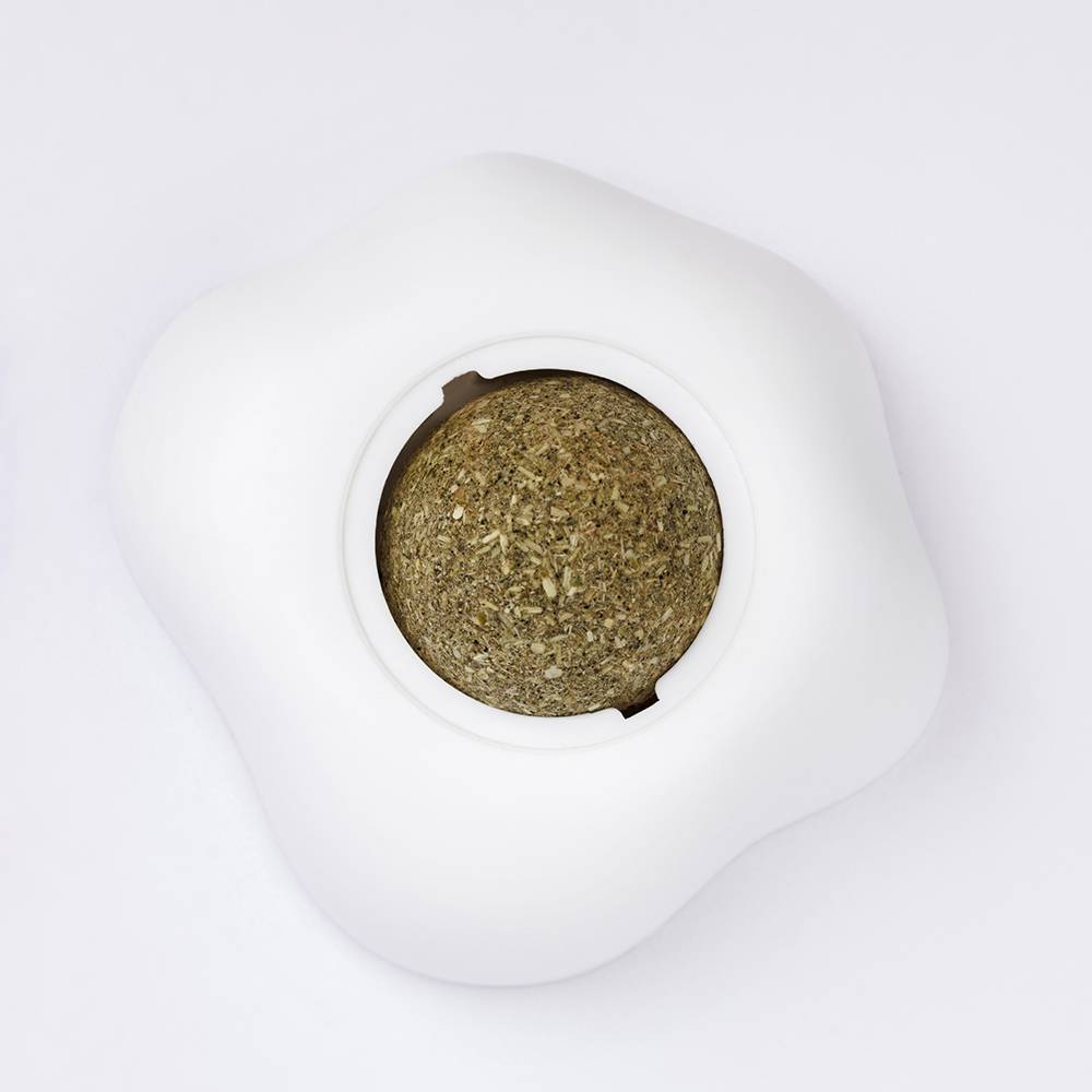 Шарик-лизунец Цветочек с кошачьей мятой от бренда Petmax способствует улучшению настроения усатого питомца.