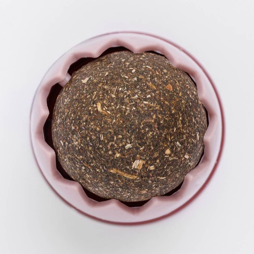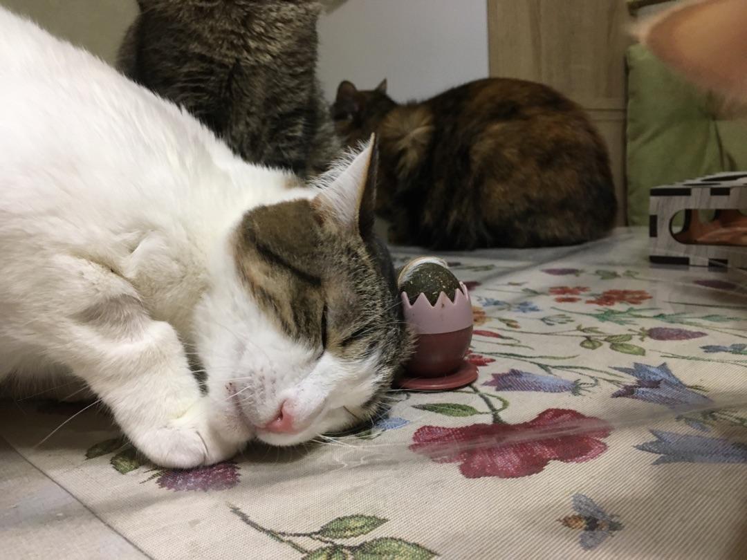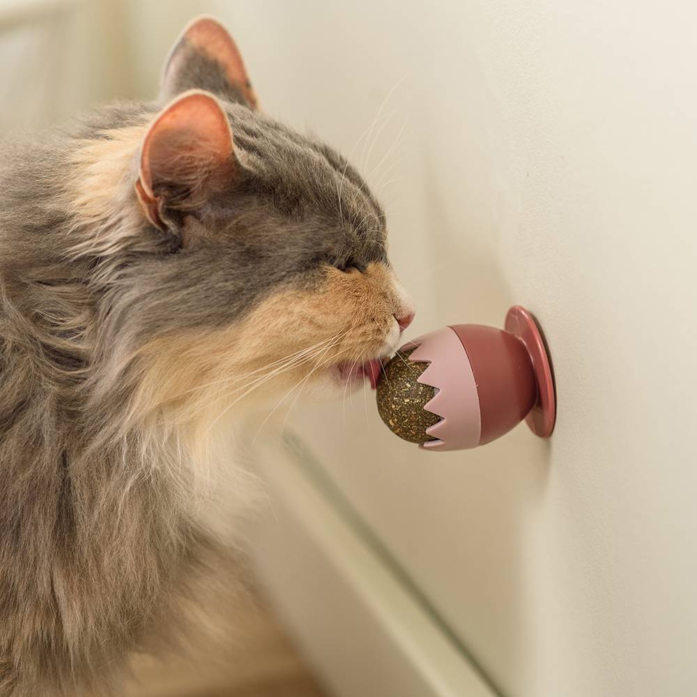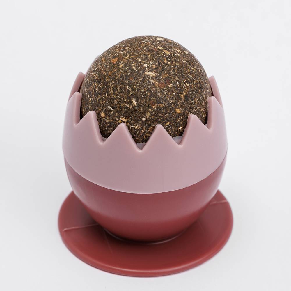 Шарик-лизунец Яйцо в подставке с кошачьей мятой от бренда Petmax способствует улучшению настроения усатого питомца.