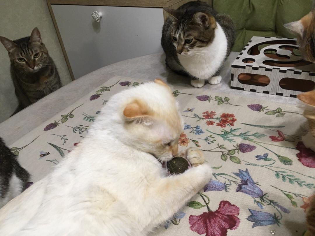 Предостережение: подбирайте игрушку согласно размерам питомца. У кошки не должно быть возможности проглотить изделие целиком или какие-либо его части. Если любимец склонен к поеданию несъедобных предметов, давайте игрушку под присмотром.