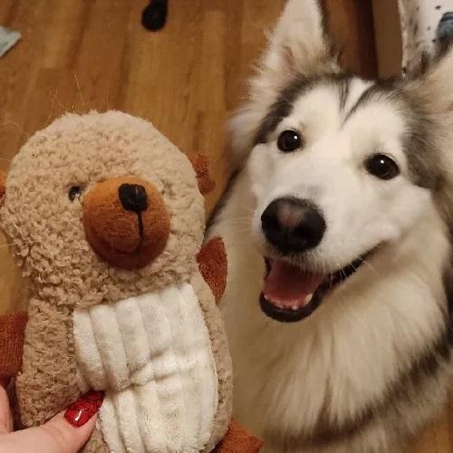 Собака счастлива, игрушка забавная и пищит и шуршит и веселитКомментарий