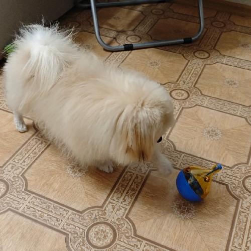 Внутрь неваляшки положите сухой корм или лакомство. Для того чтобы игрушка выполняла свою функцию, наполните максимально ее кормом или лакомством. Питомец активно играет, толкает неваляшку и получает в качестве вознаграждения корм.