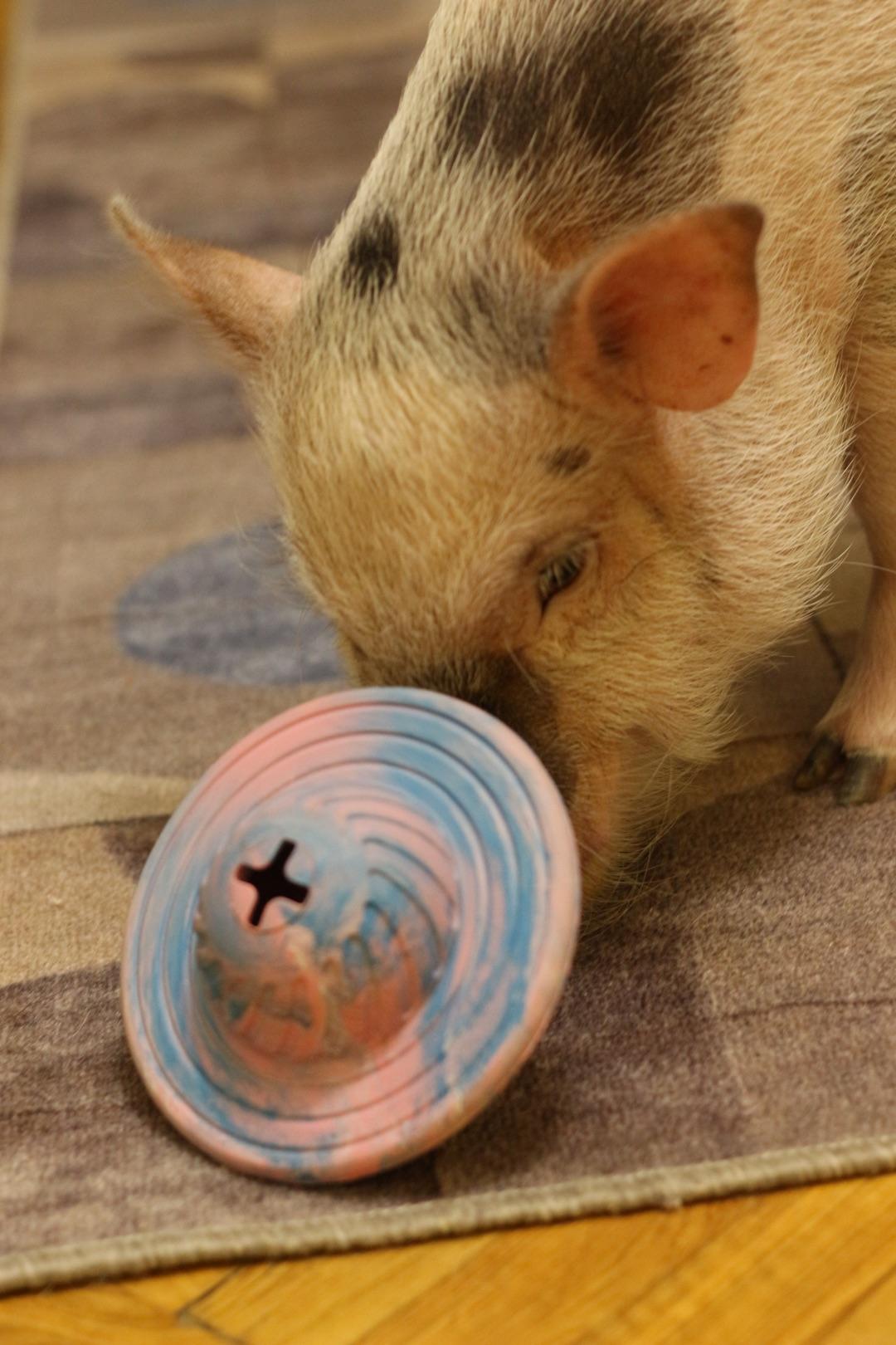 - Способствует медленному кормлению и развивает интеллект, так как для добычи лакомства необходимо приложить усилия.