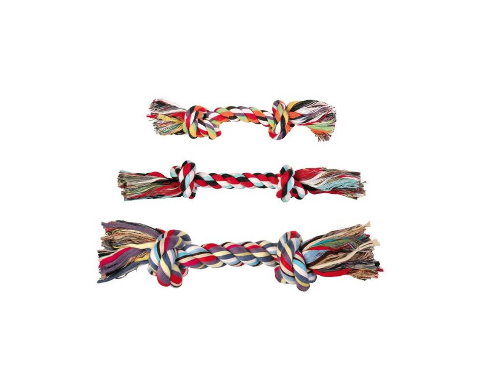 PETMAX Игрушка для собак в виде разноцветной веревки с двумя узлами длиной 35 см станет отличным развлечением для любого питомца.