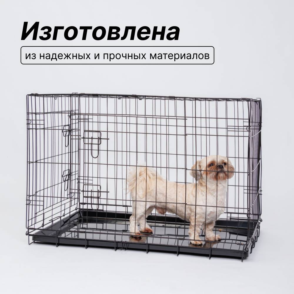 Металлическая клетка от бренда Petmax – удобное приспособление для того, чтобы оставить питомца одного и не беспокоиться за его безопасность.