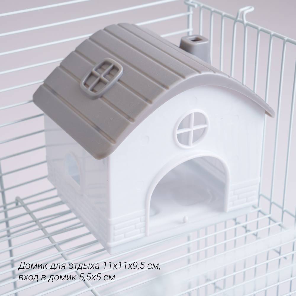 - На верхнем этаже находится домик для отдыха размером 11х11х9,5 см, вход в домик 5,5х5 см.