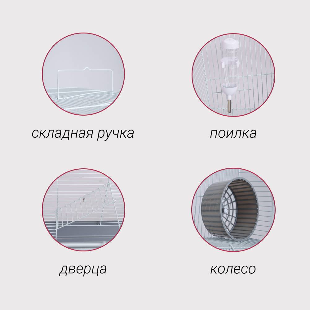 - Встроенный круг для бега диаметром 14 см позволит зверьку весело и с пользой для здоровья проводить время.