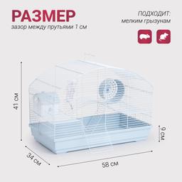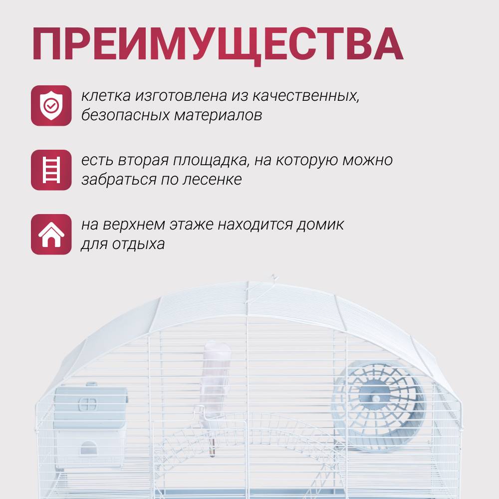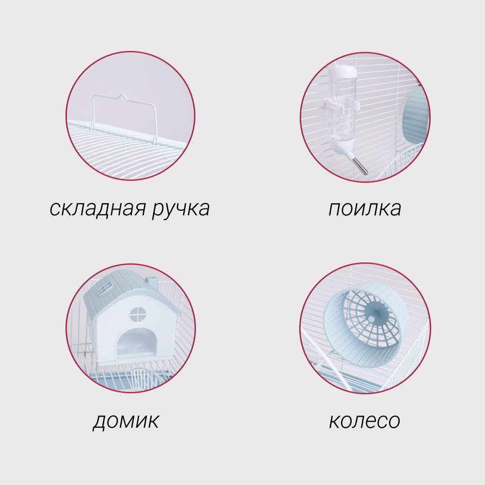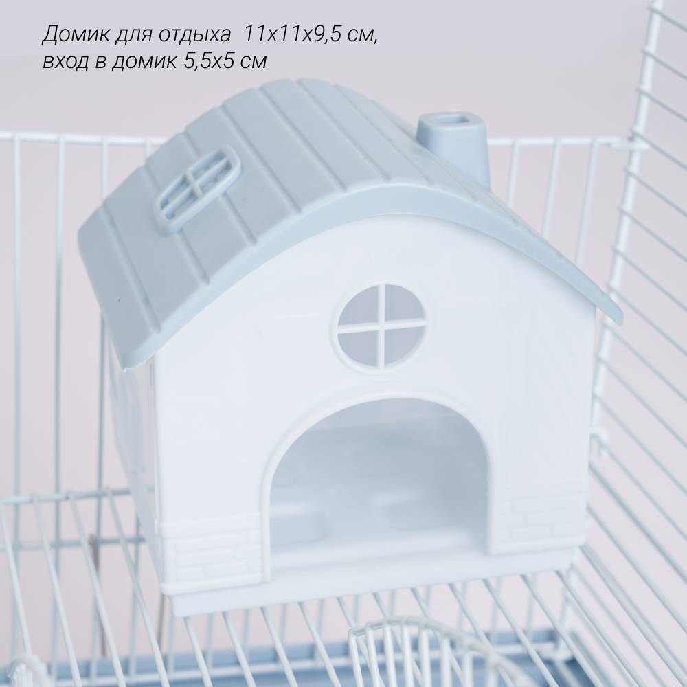 - Клетка оснащена домиком для отдыха размером 11х11х9,5 см, вход в домик 5,5х5 см.