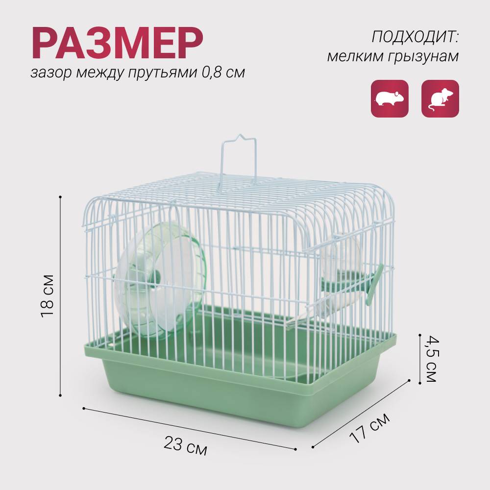 Размеры: 23х18х17 см, расстояние между прутьями 0,8 см, высота поддона 4,5 см