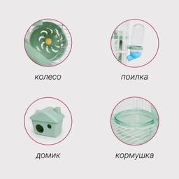 - В комплекте кормушка, поилка, колесо, труба, домик, лестница.