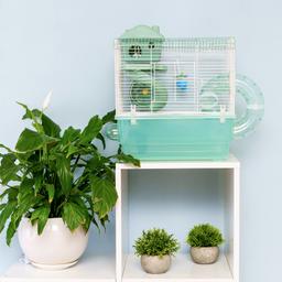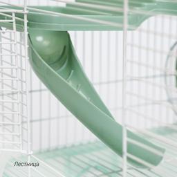 - Изготовлена из безопасных и надёжных материалов, которые гарантируют долговечность клетки и простоту в уходе.