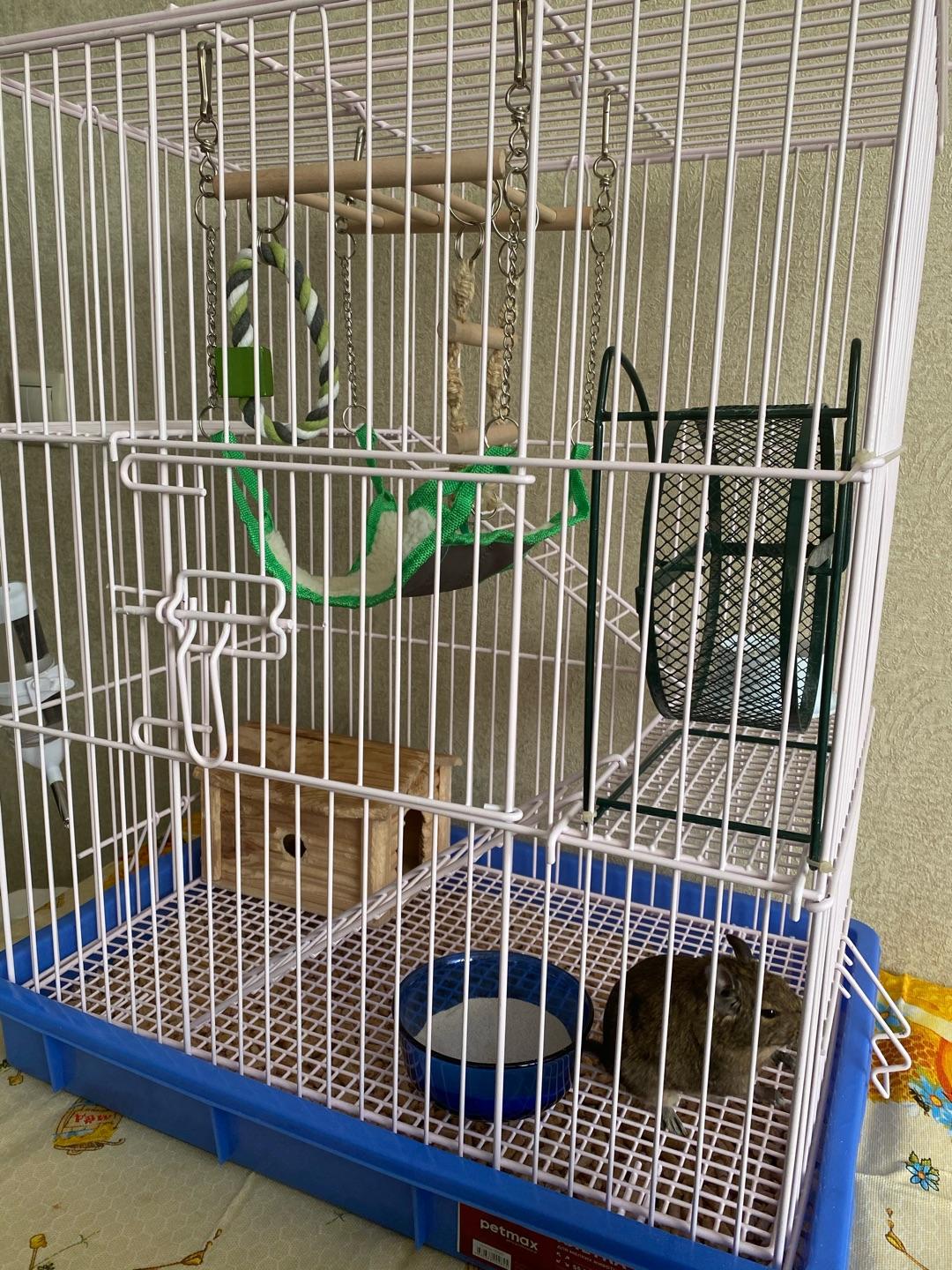Клетка очень понравилась Бекки (Дегу). Всё поместилось - полочки, лесенки, домик, колесо и гамак. Спасибо.Комментарий