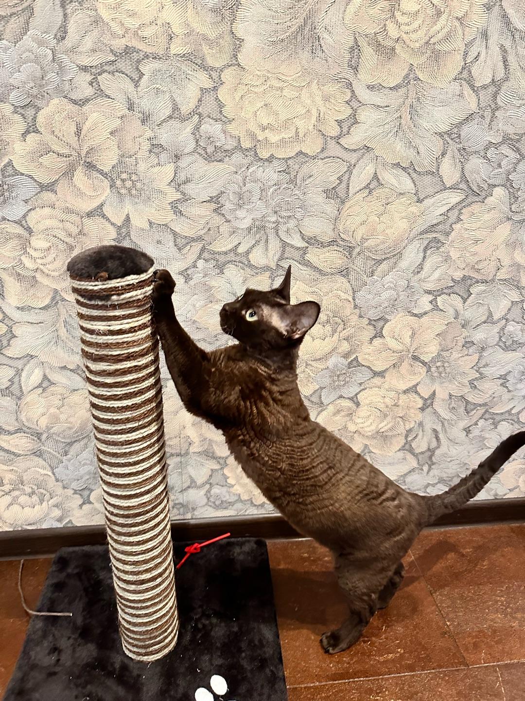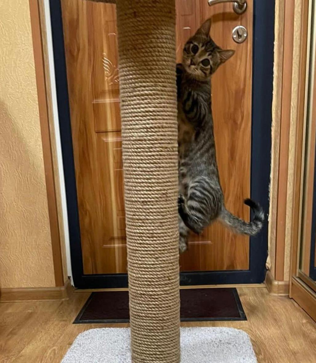 - Надежное покрытие столбика когтеточки из сизаля - прочного материала, который идеально подходит для стачивания когтей.