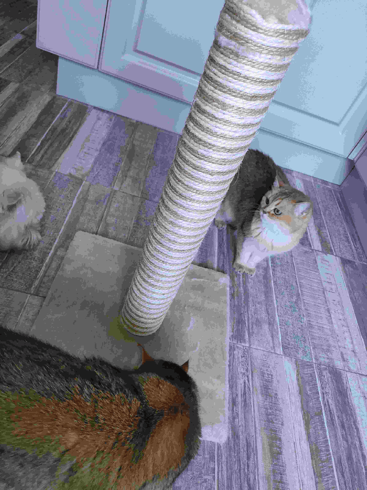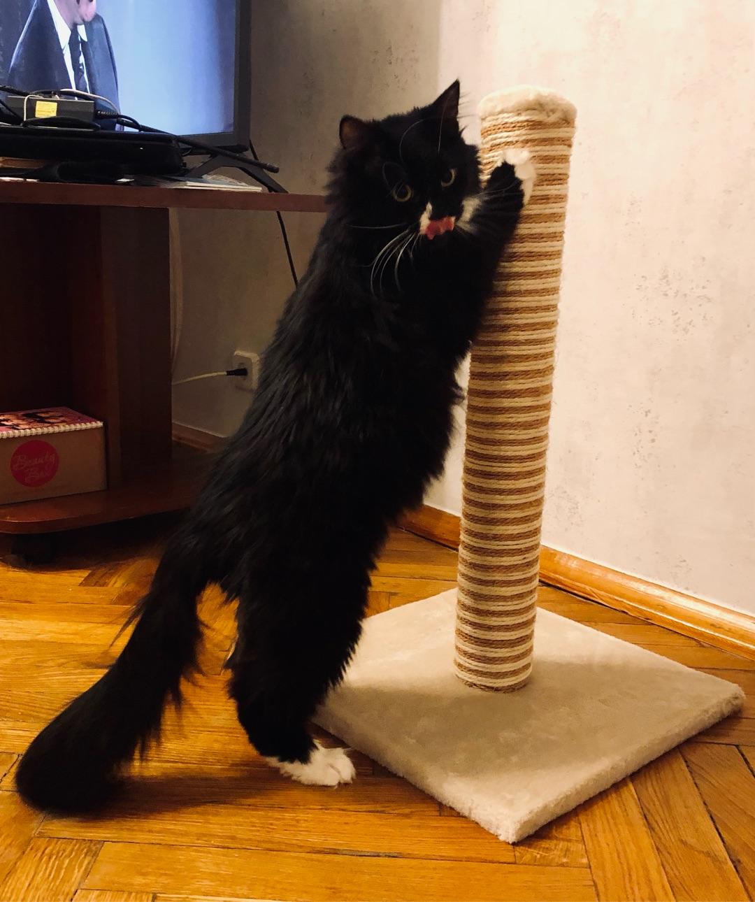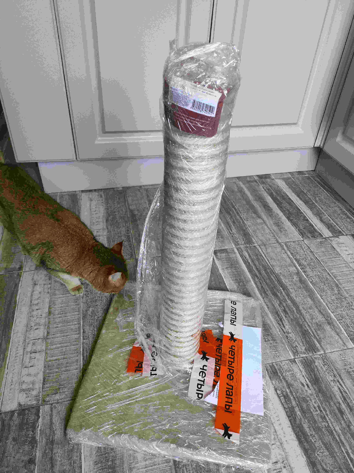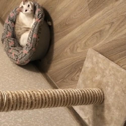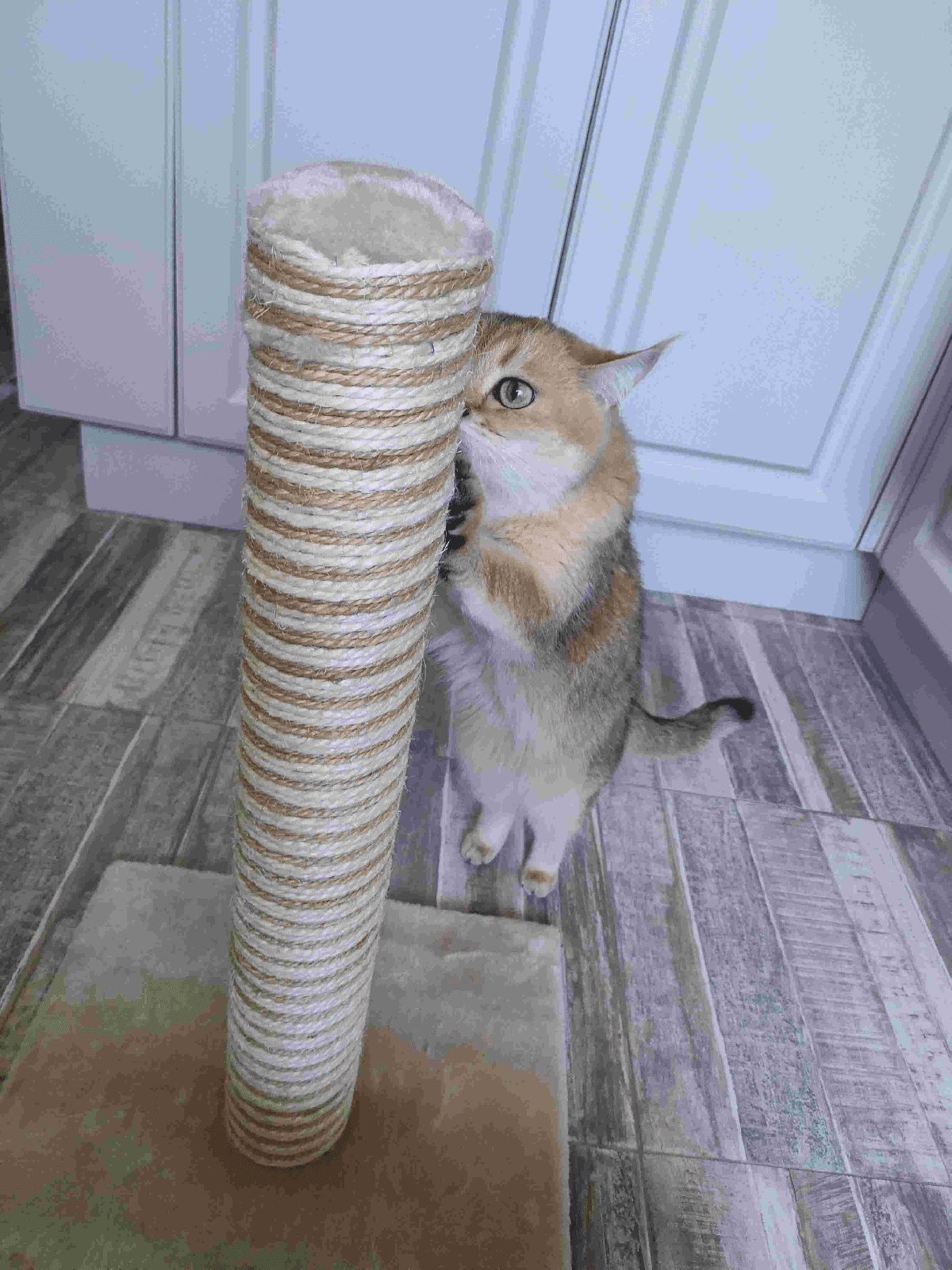 - Надежное покрытие столбика когтеточки из сизаля - прочного материала, который идеально подходит для стачивания когтей.