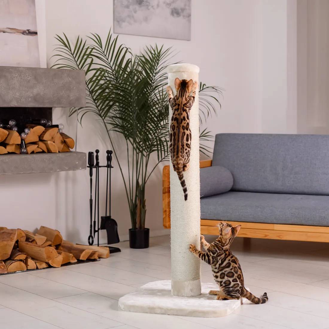 - Надежное покрытие столбика когтеточки из сизаля - прочного материала, который идеально подходит для стачивания когтей.