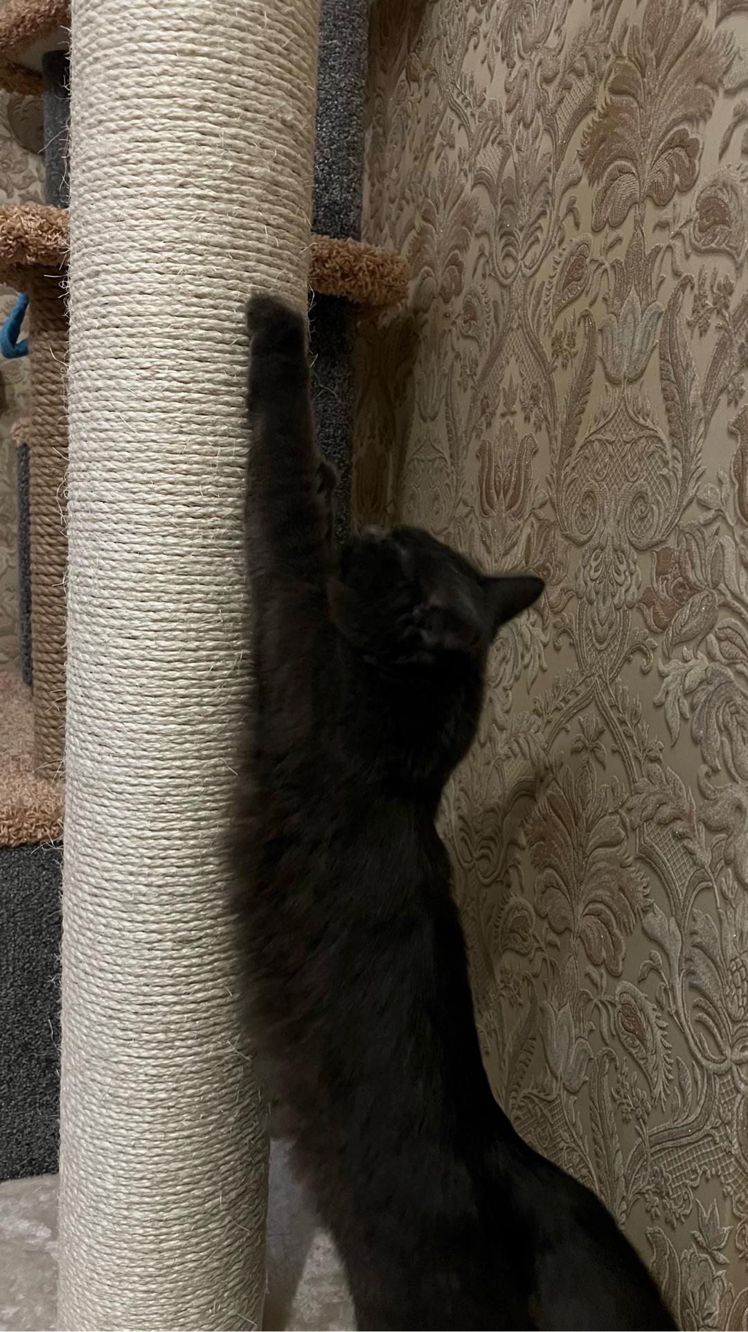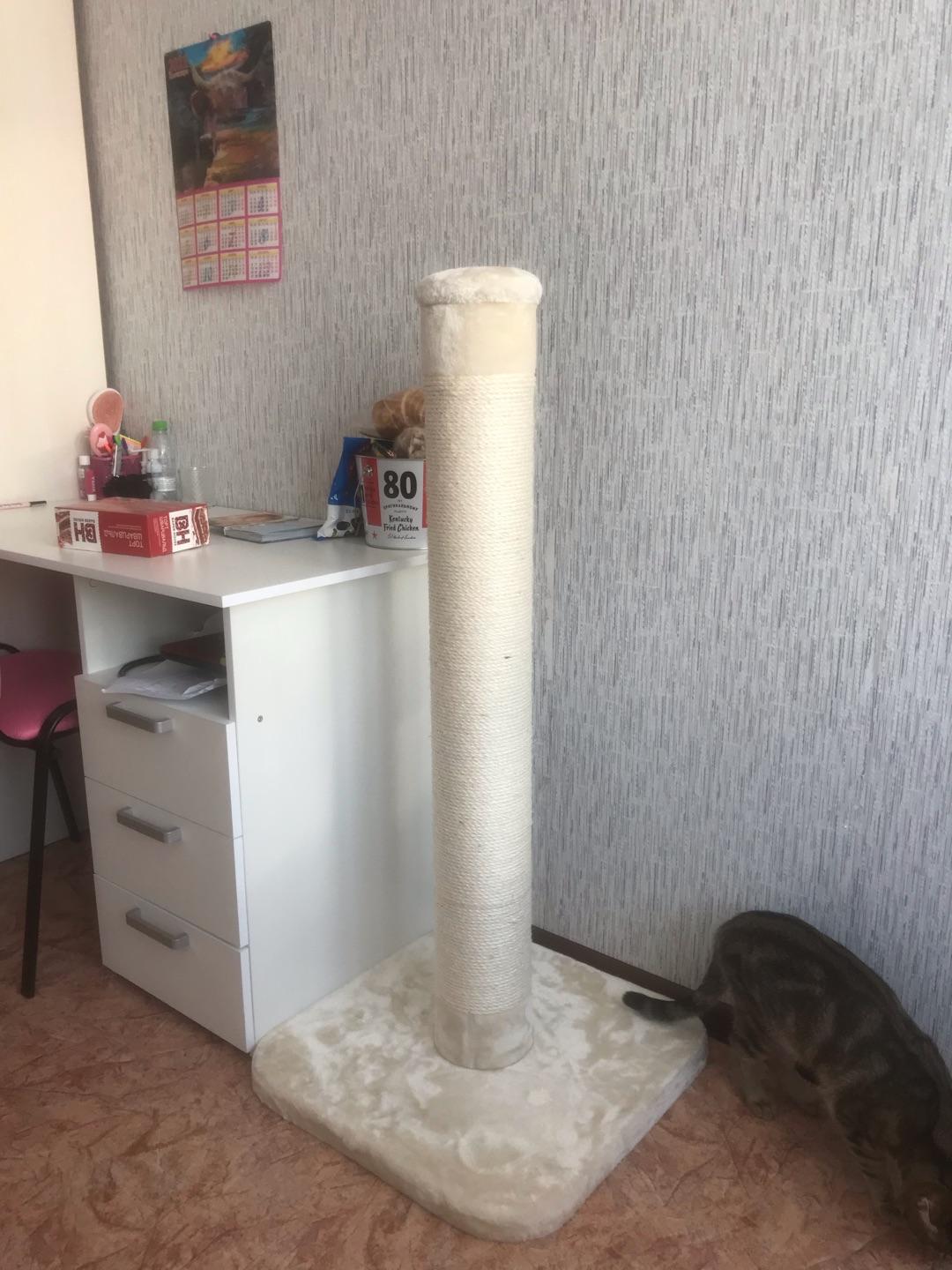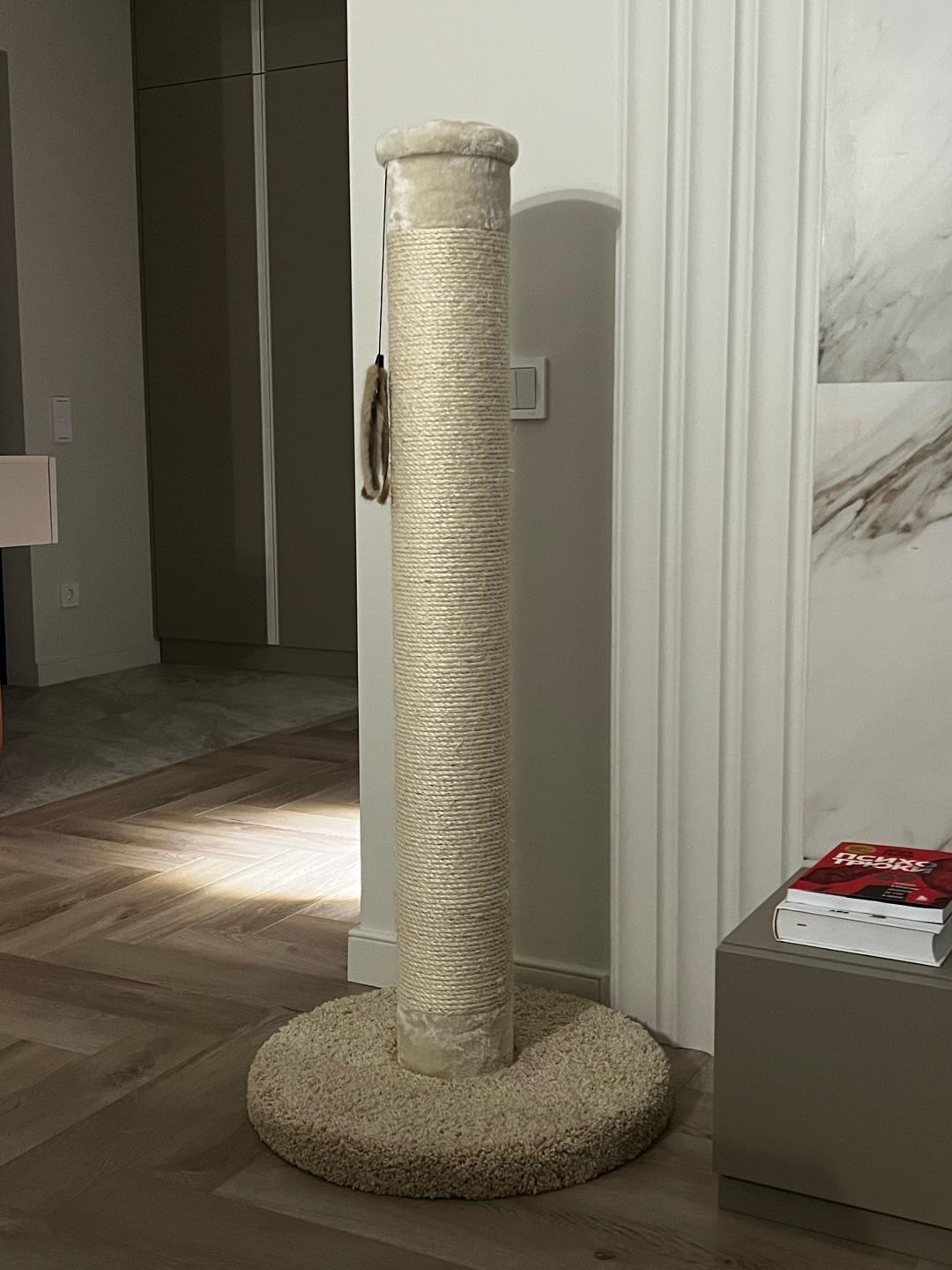 - Надежное покрытие столбика когтеточки из сизаля - прочного материала, который идеально подходит для стачивания когтей.