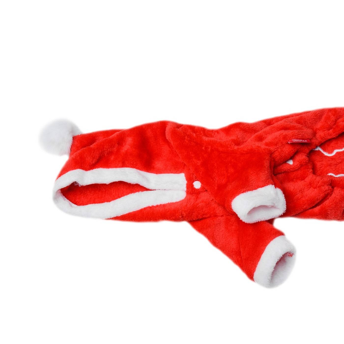 Комбинезон велюровый бордовый Дед Мороз декоративный праздничный костюм для вашего питомца, изготовленный из уютной теплой ткани.