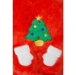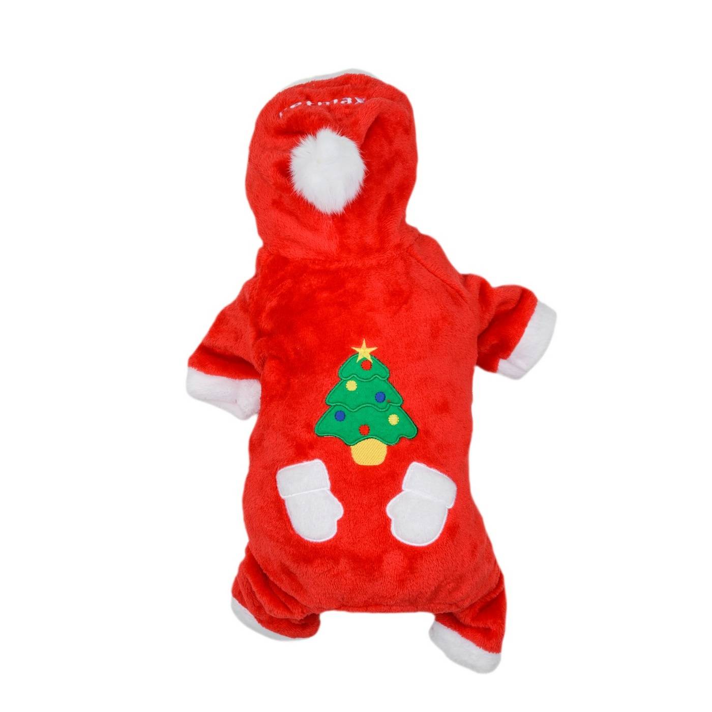 - Декор в виде аппликаций на спинке изделия и забавный помпон на капюшоне завершают праздничный образ.