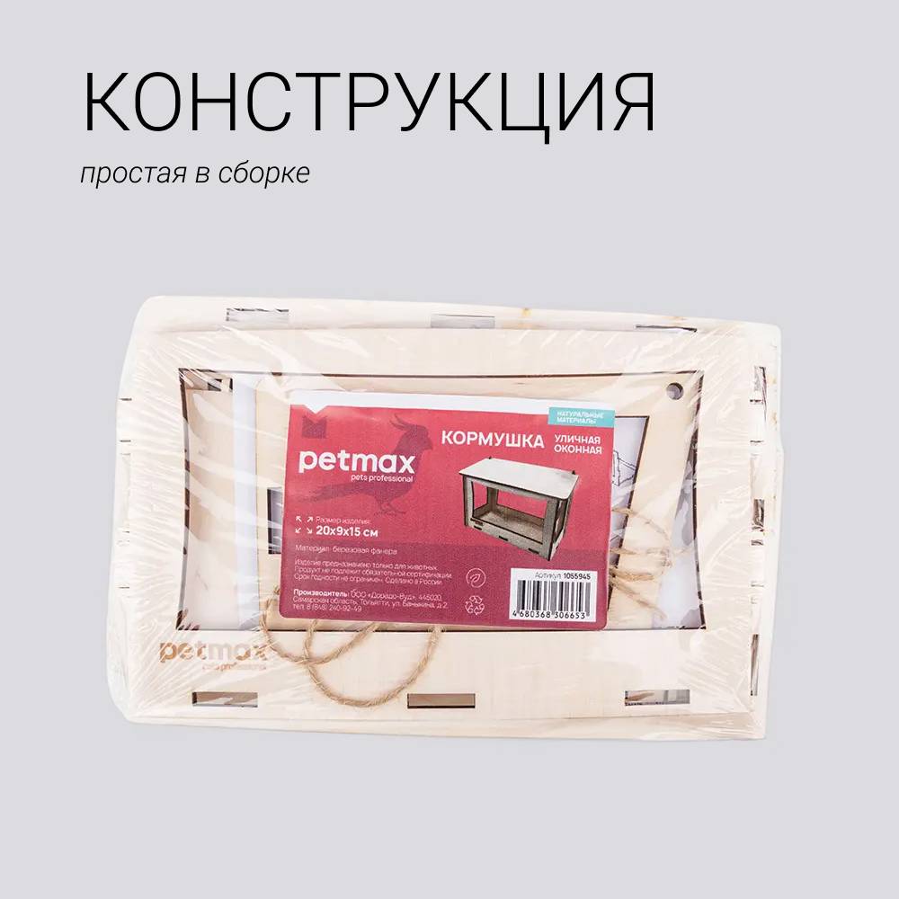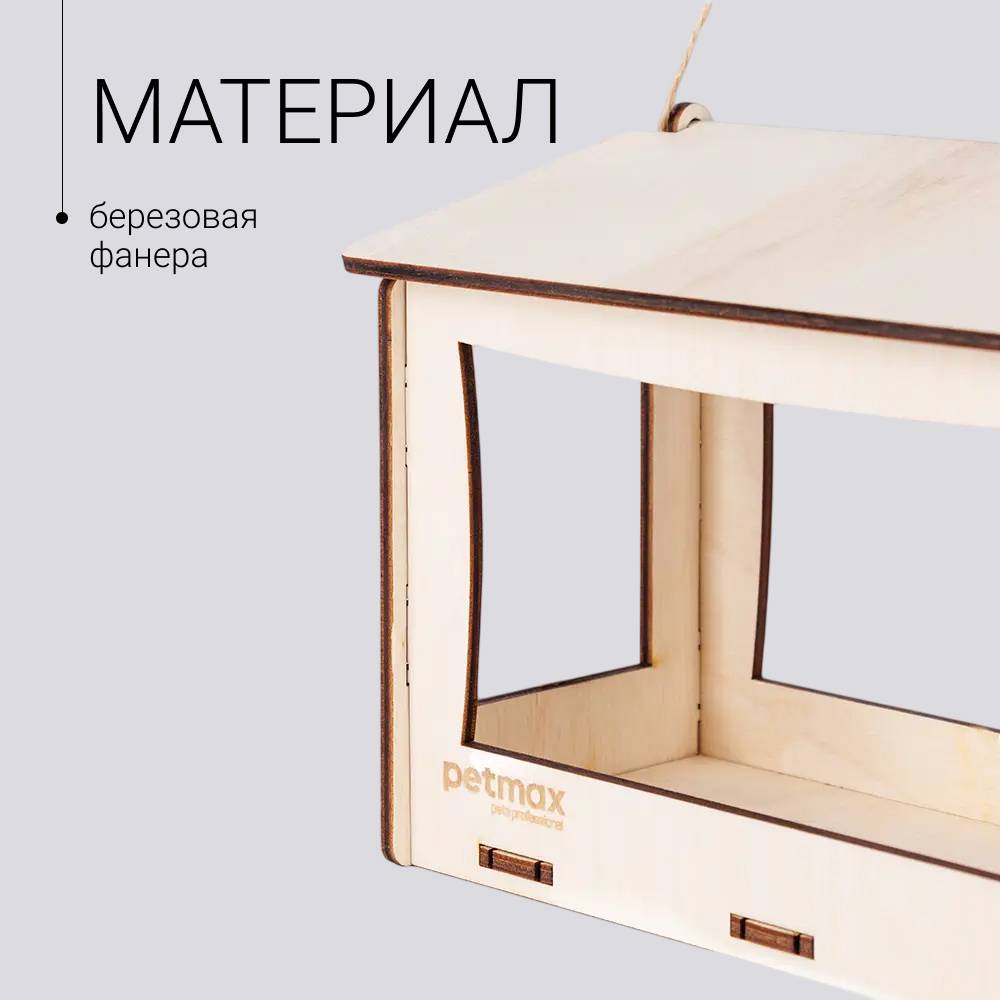 Уличная оконная кормушка для мелких птиц из березовой фанеры.