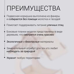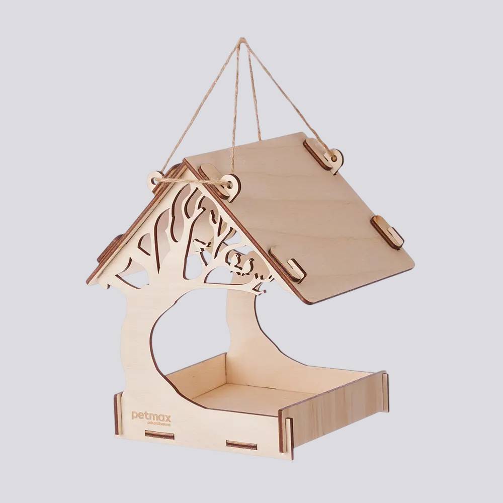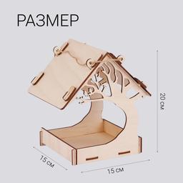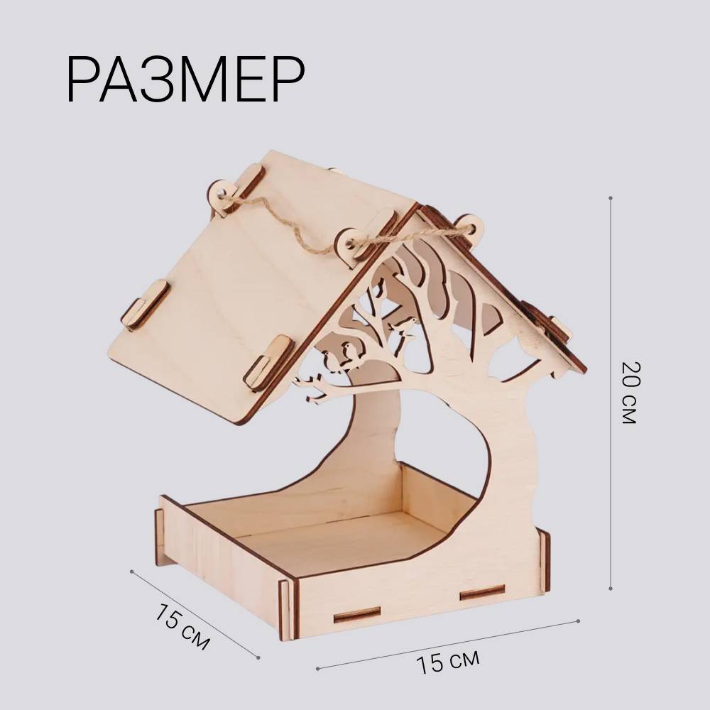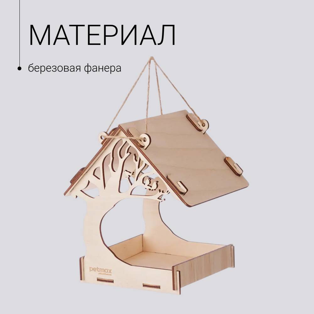 - Подвесная кормушка выполнена из фанеры и собирается без помощи молотка и гвоздей.