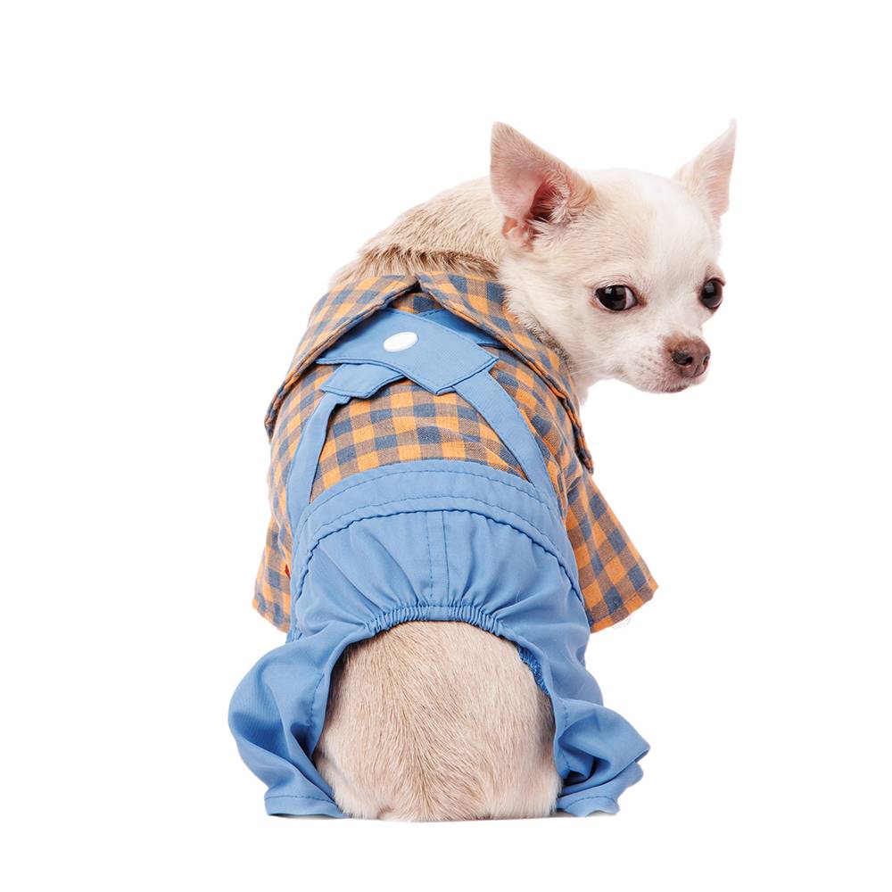 Petmax представляет новую весенне-летнюю коллекцию одежды для собак. Джинсовый костюм с сине-желтой рубашкой и с отложным воротничком подойдет любому питомцу. Он легко надевается, не сковывает движений и очень стильно смотрится.