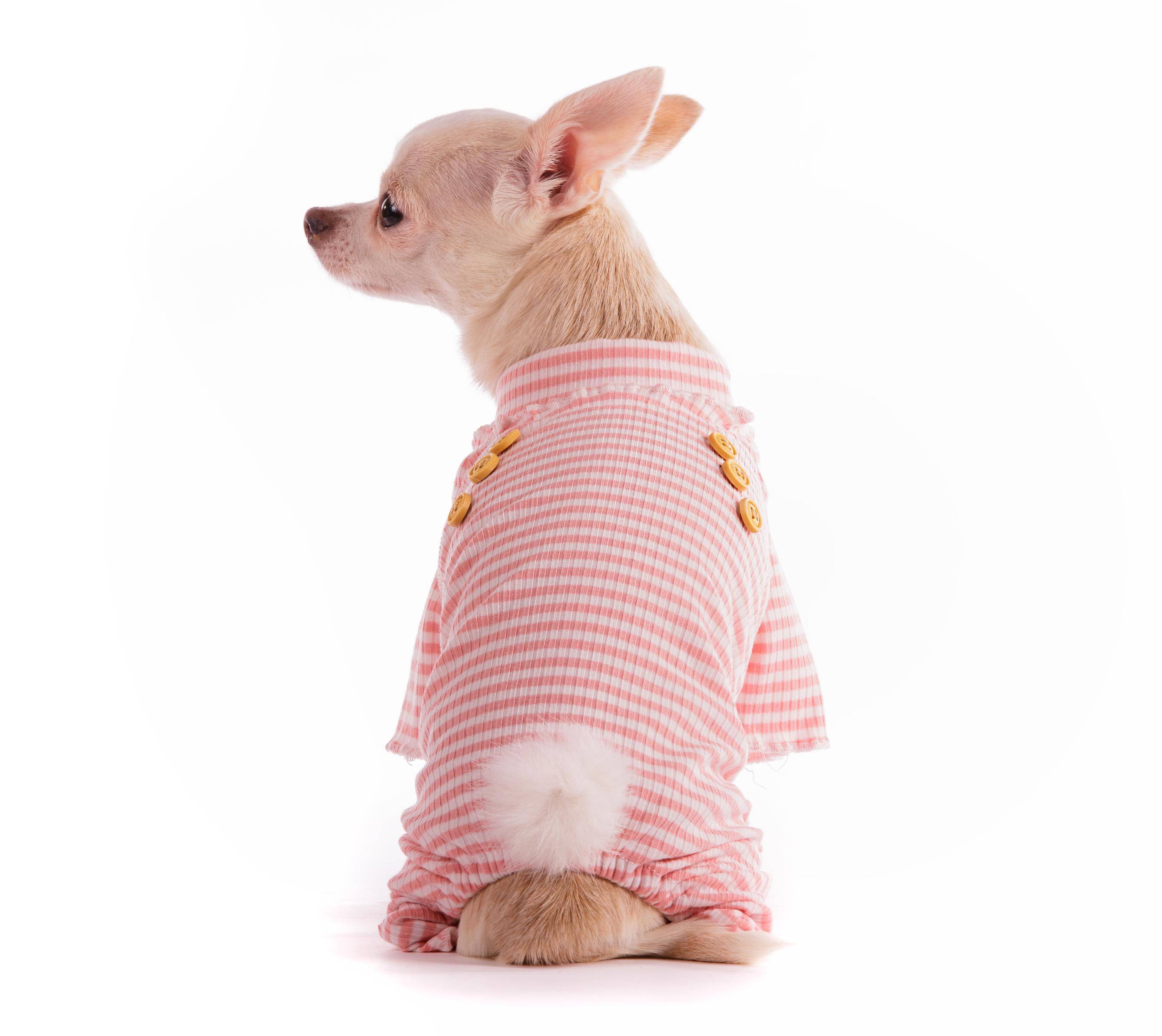Легкий трикотажный костюм из нежной розовой ткани в белую полоску. Такой костюмчик можно носить в качестве легкой курточки в сухую прохладную погоду или надеть в качестве теплого слоя под дождевик.