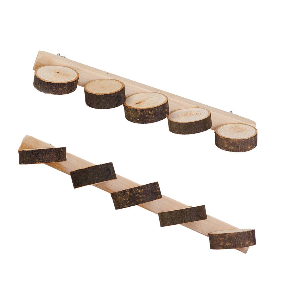 Удобная лесенка из натурального дерева с пятью ступенями от бренда Petmax станет отличным аксессуаром в клетку вашего пернатого питомца или грызуна.