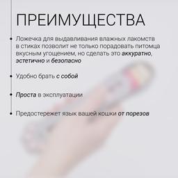 Ложечка для выдавливания влажных лакомств в стиках позволит не только порадовать питомца вкусным угощением, но сделать это аккуратно, эстетично и безопасно.