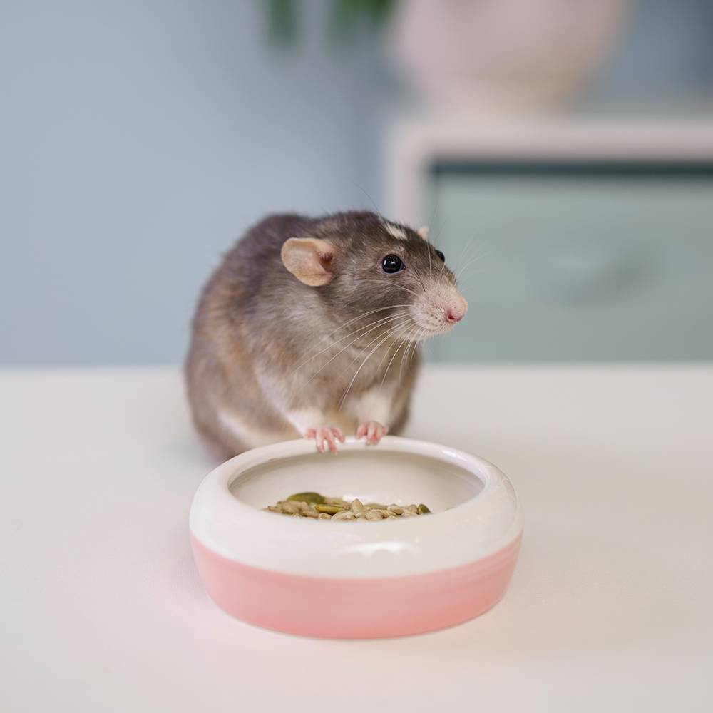Керамическая миска для грызунов от бренда Petmax подойдет для корма или воды.