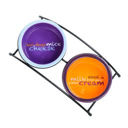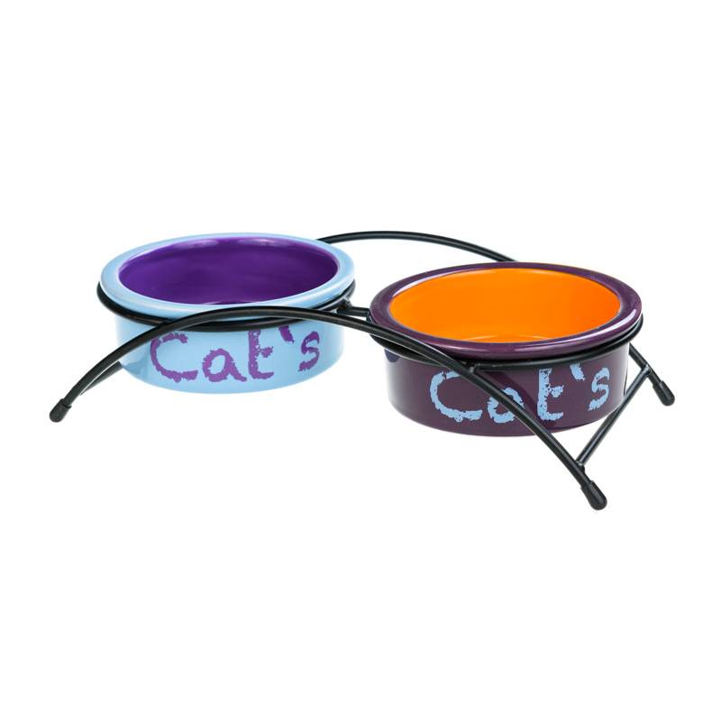 Двойная миска для кошек на подставке от Petmax в оранжевом и синем цвете и объемом 300 мл - отличный вариант для котов больших пород.