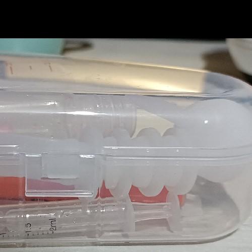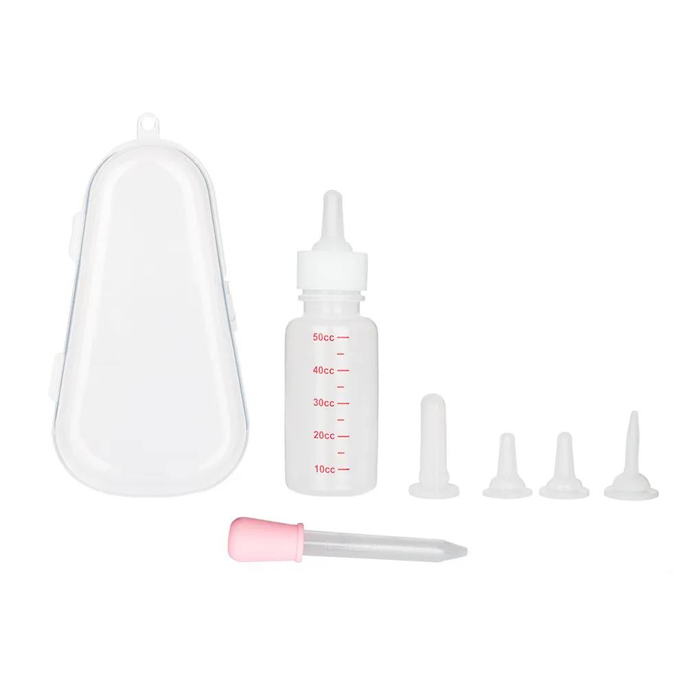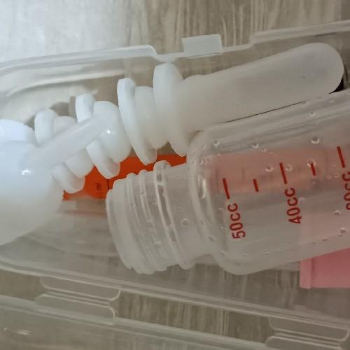 - Набор состоит из мерной бутылочки объемом 50 мл, 4 силиконовые соски различных размеров и шприц для кормления, бокс для удобства хранения.