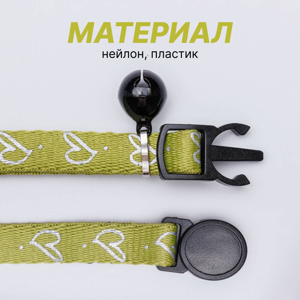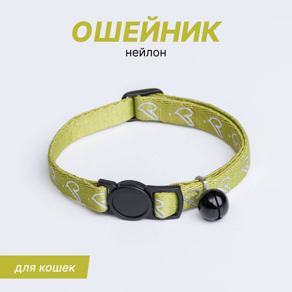 Petmax Ошейник нейлоновый со светоотражающим адресником для кошек и собак мелких пород, 1х30 см, зеленый