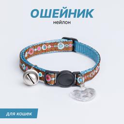 Petmax Ошейник нейлоновый со светоотражающим адресником для кошек и собак мелких пород, 1х30 см, голубой