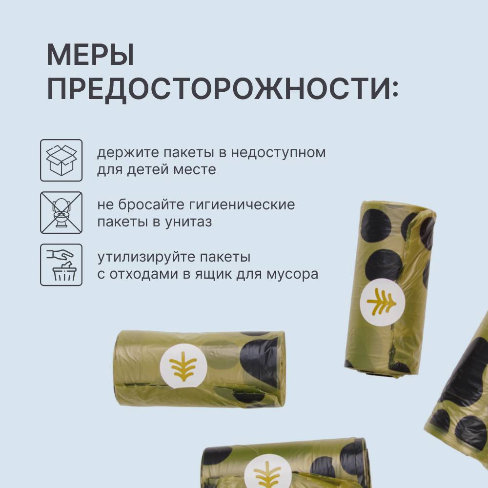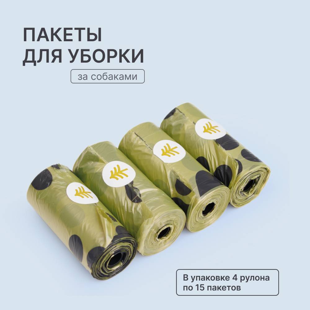 Пакеты предназначены для уборки за собаками в общественных местах. В упаковке 4 рулона по 15 шт.
