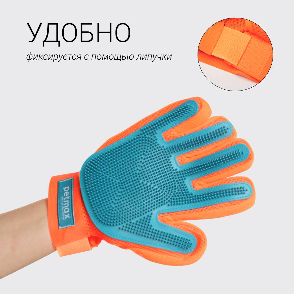 Перчатка для груминга от бренда Petmax помогает легко удалять выпавшую шерсть и загрязнения, аккуратно распутывает небольшие колтуны, обеспечивает мягкий массаж, улучшает состояние кожи и шерсти.