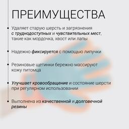 - Удаляет старую шерсть и загрязнения с труднодоступных и чувствительных мест, такие как мордочка, хвост или лапы.