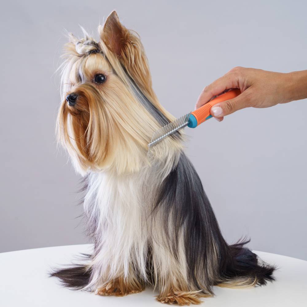 - Редкие зубья распутывают колтуны и убирают загрязнения, частые — вычесывают подшерсток и выравнивают шерсть.